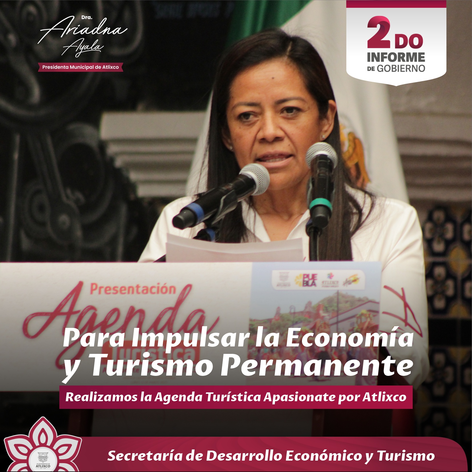 La presidenta municipal de Atlixco, Ariadna Ayala destacó durante el desarrollo de su segundo informe que gracias a la suma de voluntades del gobierno municipal, sociedad e iniciativa privada, continúa con el desarrollo exitoso de nuevos eventos  que registraron la visita de más de 1.5 millones de turistas, acción que generó más oportunidades e impulso a la economía local.