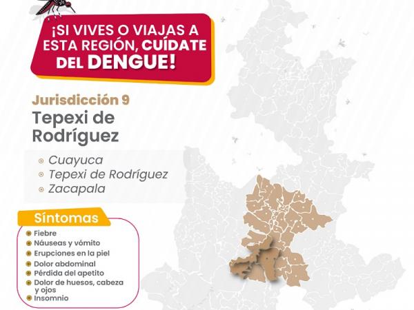 El dengue tiene presencia en 108 municipios del estado, en ese sentido Soria Córdoba exhortó a las y los poblanos que presenten fiebre alta, dolor muscular o de articulaciones, náuseas y vómito, dolor de cabeza y sarpullido, acudir de inmediato a la unidad médica más cercana para recibir el tratamiento adecuado.