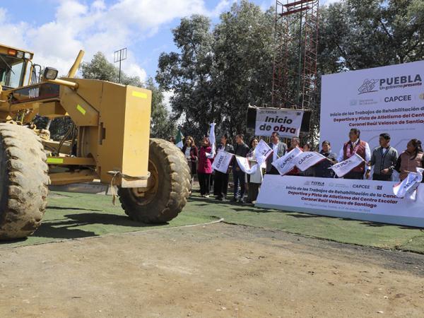 – Con una inversión de 15.1 mdp, el gobernador inició los trabajos de rehabilitación de la cancha deportiva y pista de atletismo en el Centro Escolar “Coronel Raúl Velasco de Santiago”