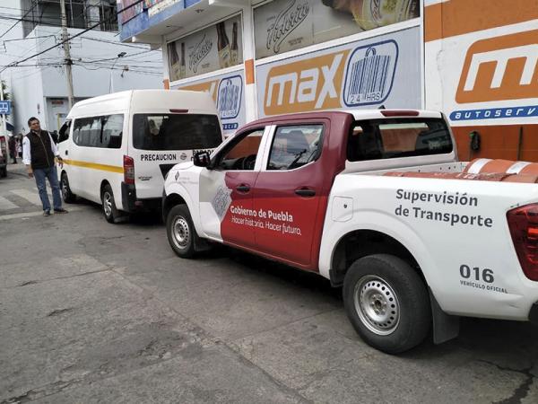 CIUDAD DE PUEBLA, Pue. – Como parte de las acciones del gobierno presente de Sergio Salomón para constatar el cumplimiento de las normas y criterios en la legalidad del servicio de transporte público, la Secretaría de Movilidad y Transporte (SMT) implementó dispositivos de inspección en los municipios de San Martín Texmelucan, Huejotzingo y San Pedro Cholula, lo que dio como resultado ocho unidades sancionadas y retiradas de circulación por diversas irregularidades.