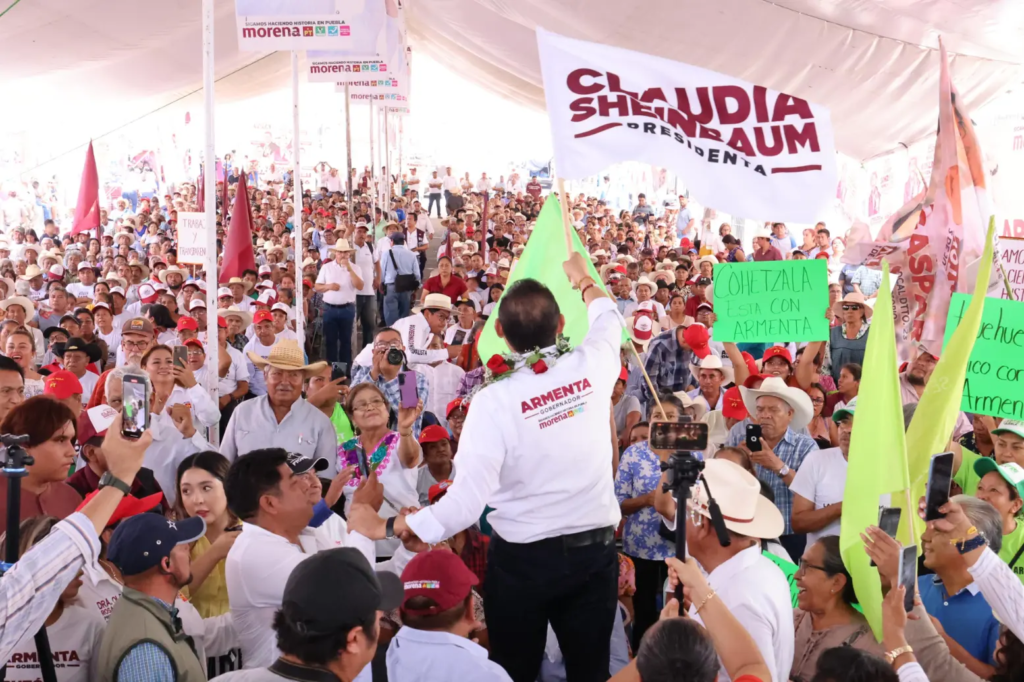 Chiautla de Tapia, Puebla. Ante los habitantes de la región mixteca, el candidato a la gubernatura de Puebla por la Megacoalición “Sigamos Haciendo Historia” Alejandro Armenta, anunció que se construirán presas, represas y bordos para resolver el problema de agua, así como en todo el estado se instalarán 30 módulos de maquinaria para mantener las carreteras en buen estado.