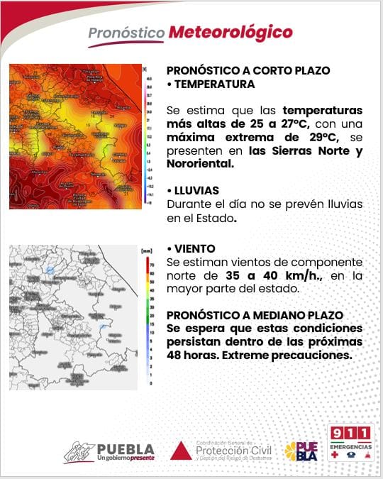 🍃 vientos de 35 a 40 km/h en la mayor parte del estado.