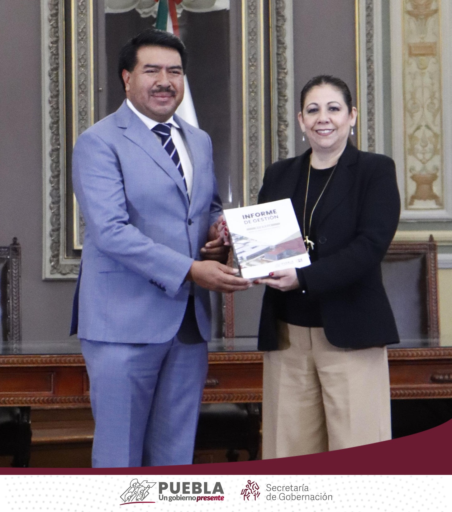 En representación del gobernador Sergio Salomón Céspedes Peregrina, el secretario de Gobernación Javier Aquino Limón hizo entrega de una memoria institucional del Gobierno de Puebla, a la presidenta de la Junta de Gobierno y Coordinador Política del H. Congreso del Estado de Puebla Laura Artemisa García Chávez documento donde se expone una recapitulación de todas las acciones impulsadas a lo largo de los 6 años de esta administración.