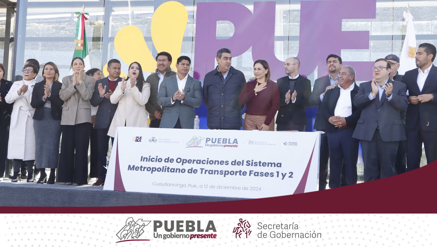 Con el objetivo de mejorar la comunicación en la zona metropolitana, el secretario de Gobernación Javier Aquino Limón, asistió al banderazo de inicio de operaciones del Sistema Metropolitano de Transporte fase 1 y 2, de la línea 4 del Ruta Puebla, que encabezó el gobernador Sergio Salomón Céspedes Peregrina, el cual tuvo una inversión estatal de 935 mdp.
