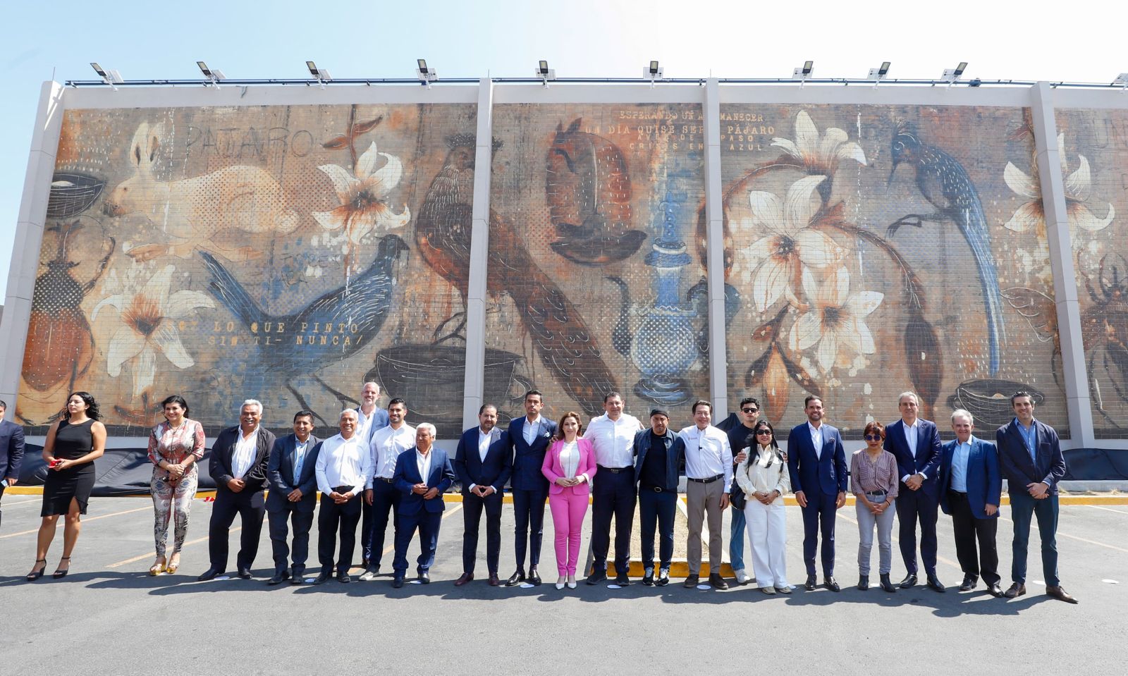 El secretario de Educación federal, Mario Delgado; el gobernador Alejandro Armenta; la presidenta del Patronato del SEDIF, Ceci Arellano; el presidente municipal de Puebla, José Chedraui; la rectora de la BUAP, Lilia Cedillo, así como empresarias y empresarios develaron el mural.
