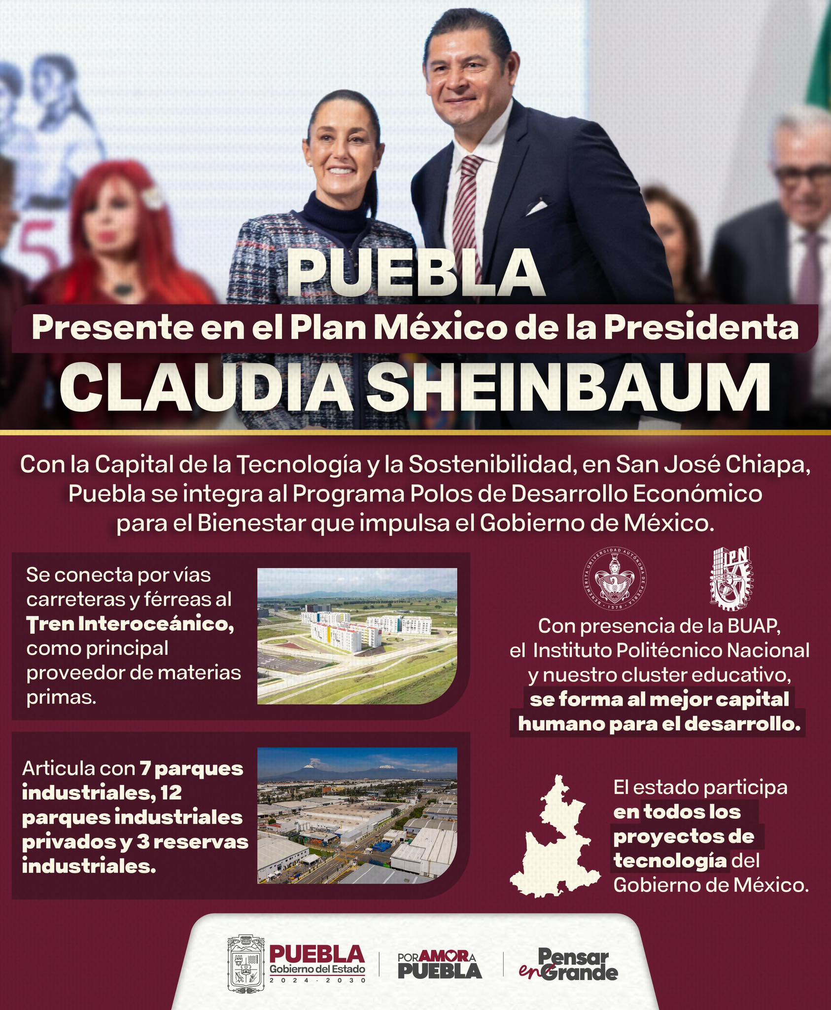 Gracias a nuestra presidenta, la Dra. Claudia Sheinbaum, la Capital de la Tecnología y la Sostenibilidad en San José Chiapa se incorpora a los Polos de Desarrollo Económico para el Bienestar, con el objetivo de fortalecer las inversiones y promover la prosperidad compartida. ⚙️🫱🏼🫲🏼