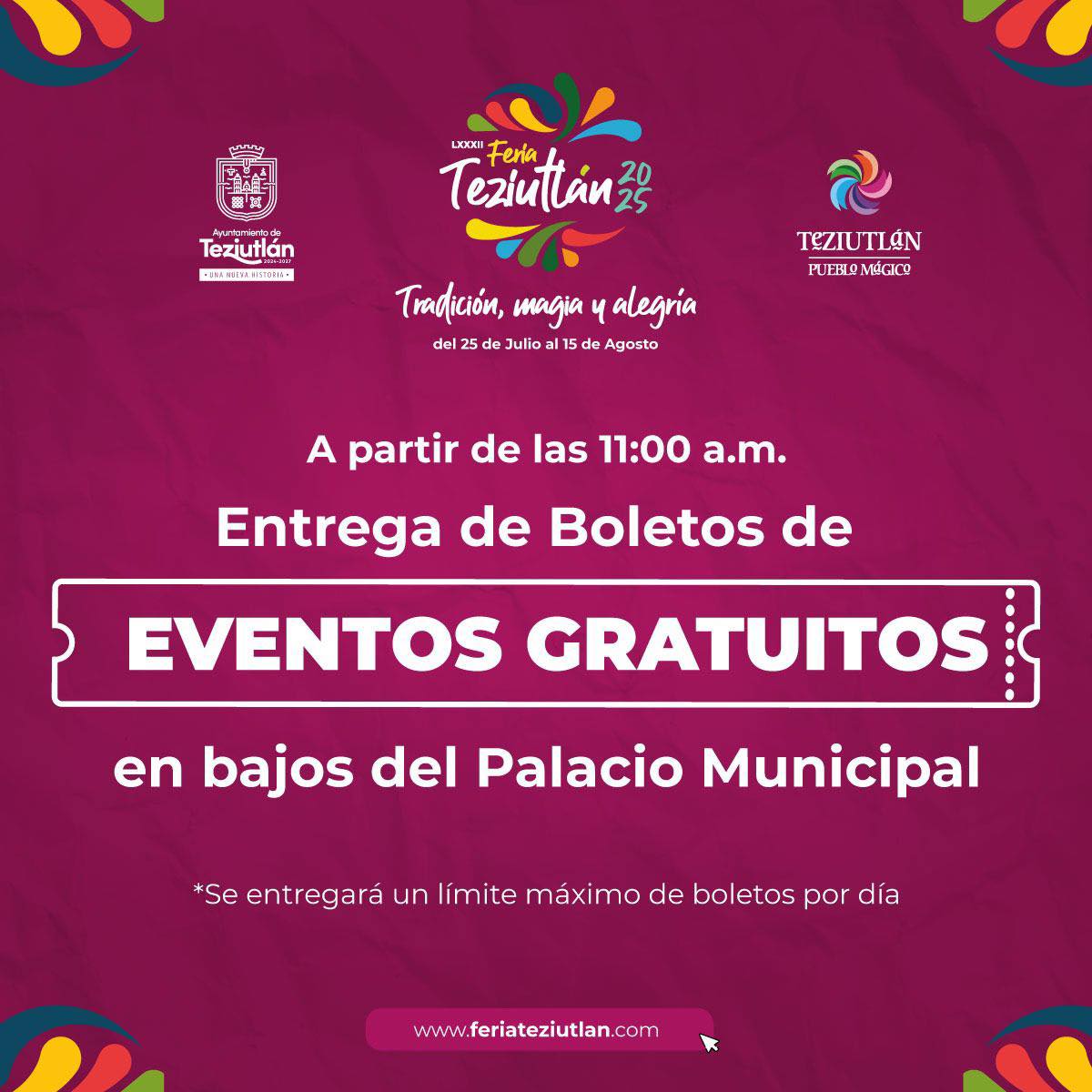 La Presidenta Municipal Karla Martínez y el Comité de Feria 2025, te invitan a asistir a la entrega de boletos para los eventos gratuitos que se realizará del 25 de julio al 15 de Agosto. 🎟️🎫
