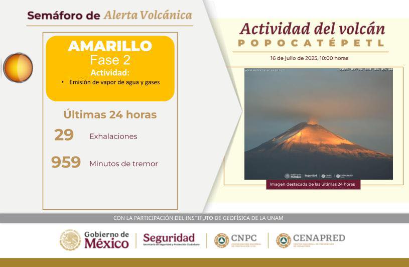 La #SSPC y el #Cenapred informan sobre la actividad del #Popocatépetl en las últimas 24 horas 🌋: