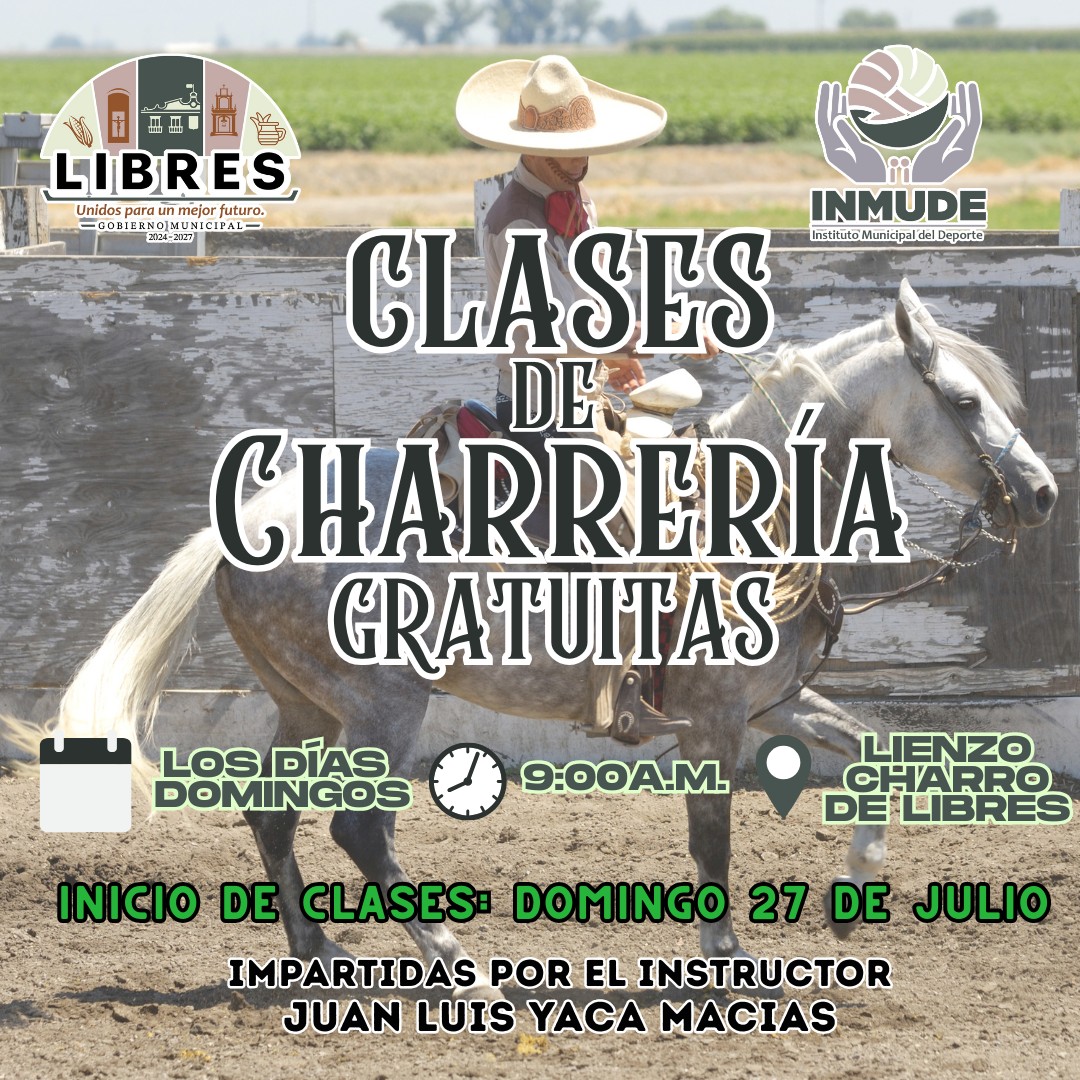El Gobierno Municipal de Libres, a través del Instituto Municipal del Deporte, invita a todos los hombres apasionados por nuestras tradiciones a integrarse al Grupo de Charros de Libres.