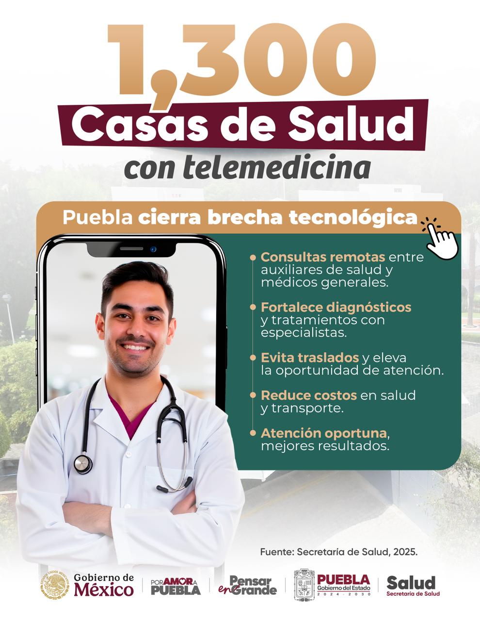 ✨ Imagínate vivir en una comunidad lejana y que sin salir de tu casa de #Salud, un especialista te atienda en minutos. Eso ya es una realidad en #Puebla: más de 1,300 Casas de Salud ahora tienen #Telemedicina. 🚑🩺 Con el impulso de nuestro gobernador Alejandro Armenta, el trabajo de nuestra secretaria Bonita Sanchez y el respaldo del Gobierno de Puebla, cerramos la brecha tecnológica en salud y cuidando a quienes más lo necesitan. 💙 Porque en #Puebla, la salud también se conecta. 🌐