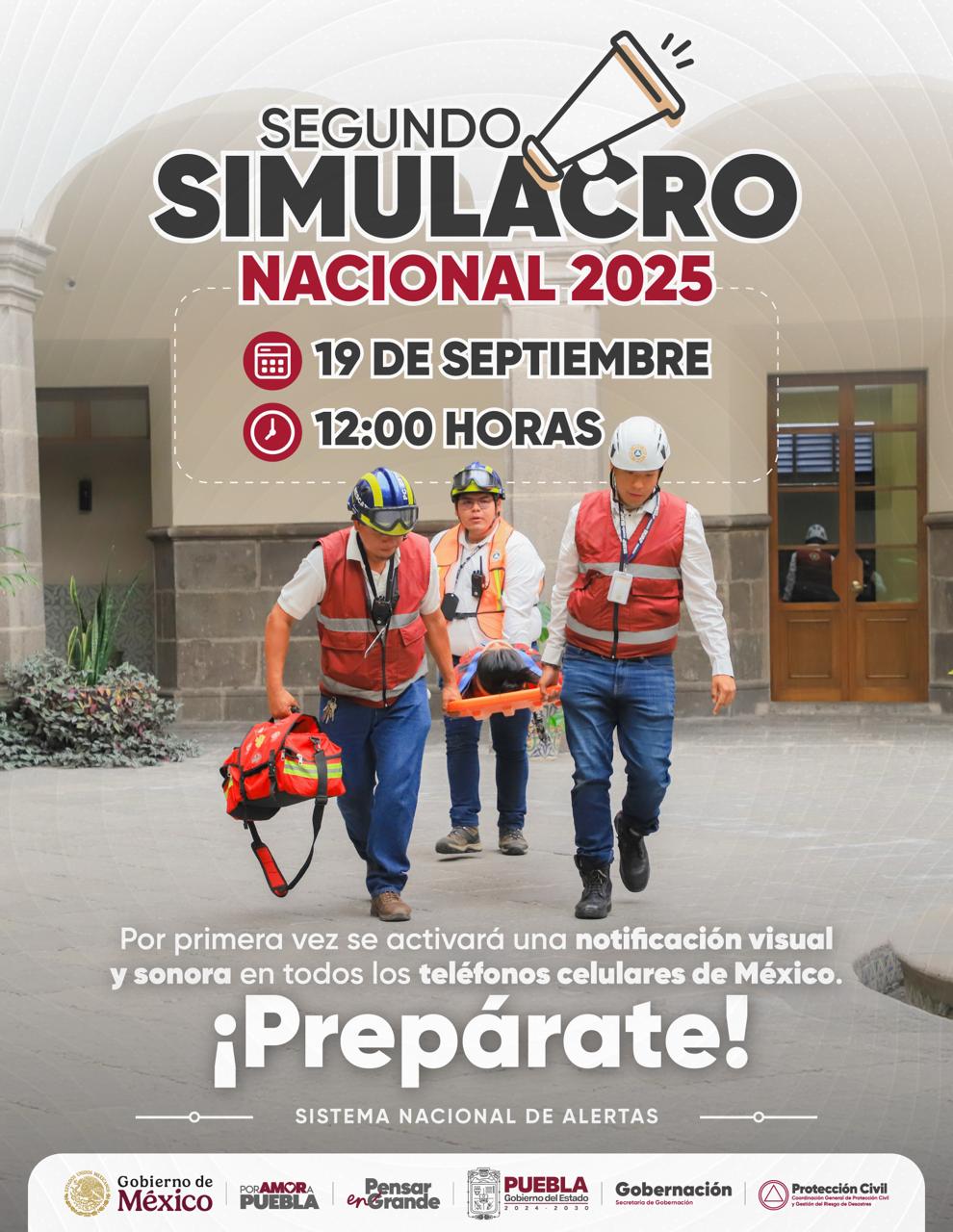 🌍 La prevención comienza imaginando lo inesperado: un #Sismo. 🚨Este 19 de septiembre, a las 12:00 h, todas y todos participamos en el Segundo #SimulacroNacional. 👀 Y atención: esta vez será distinto, porque por primera vez la alerta llegará también a tu celular. 📱La secretaria Bonita Sanchez, junto con el gobernador Alejandro Armenta y el Gobierno de Puebla, te invitan a unirte y recordar que la #Prevención nos hace más fuertes.💪